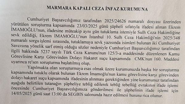 Ekrem İmamoğlu soruşturmada 14 Mayıs günü tabir verecek.