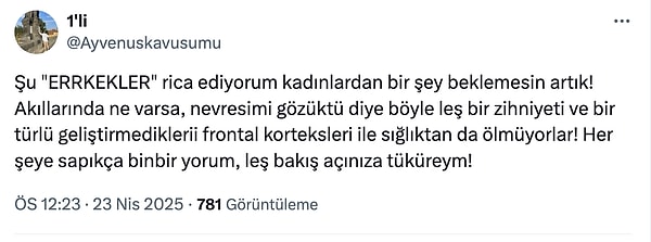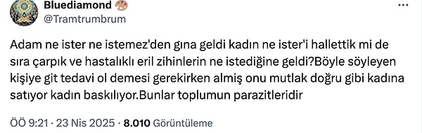 ‘Bütün Türkiye’ye nevresimini gösteren bayandan ne bekleyeyim ki’ diyor.”