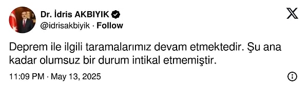 Muğla Valisi İdris Akbıyık, taramaların devam ettiğini ve şu ana kadar kendilerine olumsuz bir durum intikal etmediğini açıkladı.