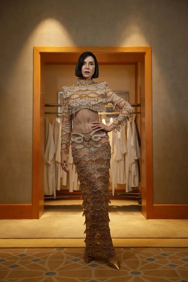Oğlu Kemal’in annesini yalnız bırakmadığı gecede tüm gözleri üzerine çeken Ahu Yağtu’nun elbisesi de bir oldukça dikkat çekti. 46 yaşındaki Yağtu’nun podyumda yürüdüğü anlar da farklı olay oldu.