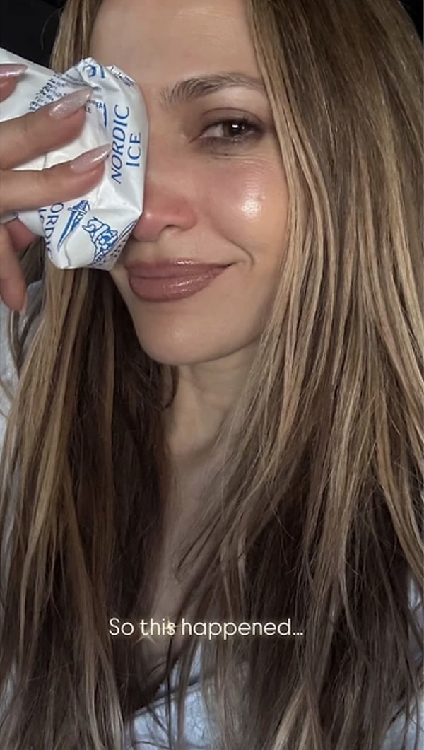 Sağ gözünün üzerine buz torbası tutarken çektiği fotoğrafı paylaşan Lopez, “İşte bu türlü bir şey oldu…” yazdı. Akabinde, burun üzerinde şişlik ve kesiklerin görüldüğü diğer bir fotoğraf daha paylaştı.