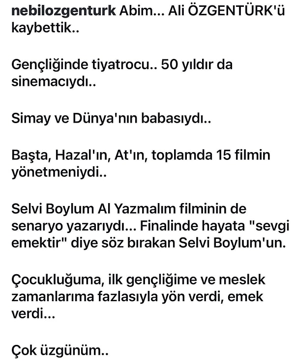 ‘Abim… Sinema yönetmeni Ali ÖZGENTÜRK’ü kaybettik..