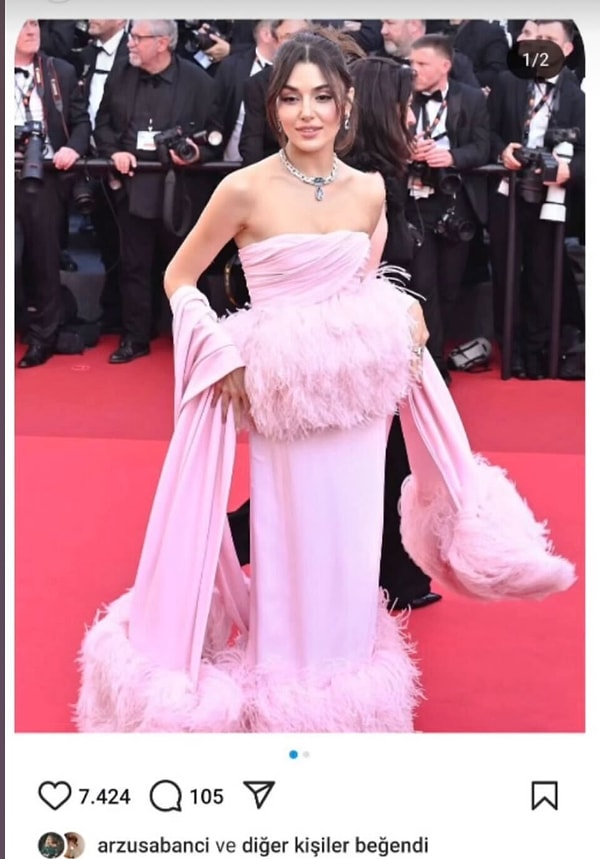 Cannes Sinema Şenliği’nde pembe elbisesi ile ışıldayan ve hoşluğu ile övgü toplayan Hande Erçel’in pozlarını Arzu Sabancı beğendi.