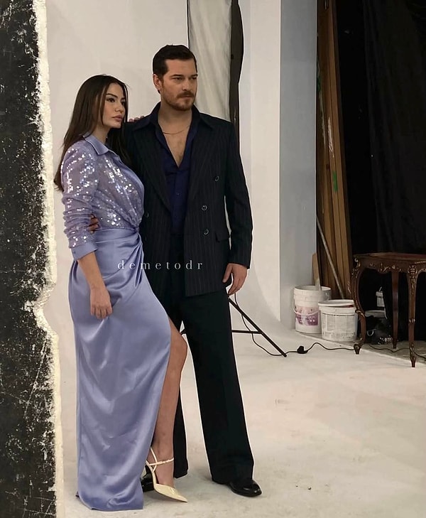 Geçtiğimiz günlerde bir çekim için birlikte kamera karşısına geçen partnerlerin pozunda bu sefer rastgele bir ahenk bulunamazken, Demet Özdemir’e giydirilen lila rengi elbise kötü göze battı.