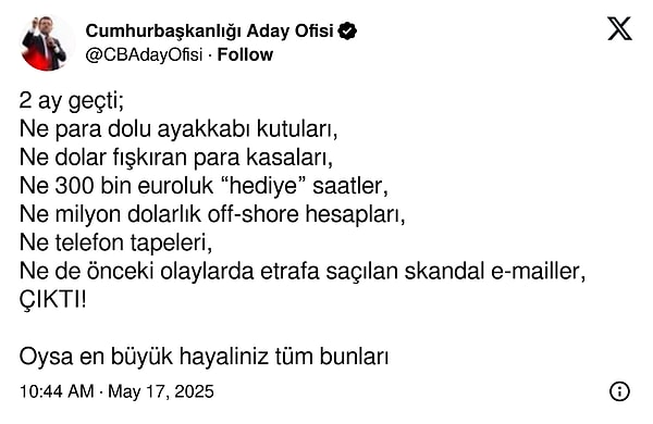 İmamoğlu’nun yaptığı aktüel açıklamalar bu hesaptan paylaşılmaya devam ediyor.