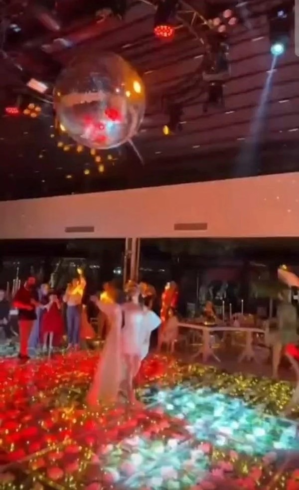 Kına gecesine ait imajlar ortaya çıktı. Görüntülerde, dev disko topunun altında gelin ve damadın davetlilerle birlikte eğlendiği görüldü.