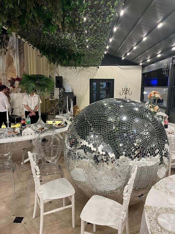 Avukat B.M. ile Eczacı B.S’nin kına gecesinde, tavanda olan hareketli dev disko topu, yerinden koptu ve sahneye düştü.