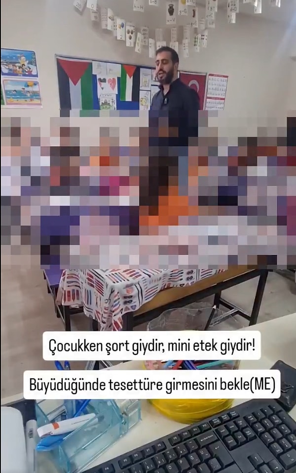 Sosyal medyada bir öğretmenin sınıfta küçük çocuklara yaptığı konuşma reaksiyon çekti. Öğretmen, küçük çocukların şimdiden şort giymemesini söyledi ve şort giymenin edepsizlik olduğunu tabir etti.