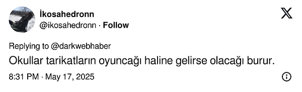 Okullar tarikatların oyuncağı haline gelirse olacağı budur.’