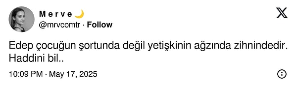 Edep çocuğun şortunda değil yetişkinin ağzında zihnindedir. Haddini bil…’