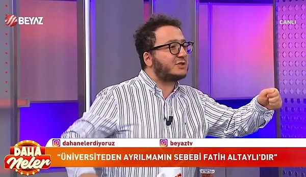 Yaptığı açıklamalarıyla isminden kelam ettiren Oytun Erbaş, Beyaz TV’de Daha Neler isimli programa konuk oldu. Erbaş bu sefer ise Fatih Altaylı’yla ilgili bir tezde bulunarak gündem oldu. Erbaş, Altaylı’nın kendisini işinden attırdığını, “Benim için üniversiteyi aradı, atın onu işten dedi. Tübitak’ı aradı, atın onu işten dedi. Üniversite idaresi de bana ‘Biz seni işten çıkarmak zorundayız, Fatih Altaylı istiyor’ dedi.” kelamlarıyla argüman etti.