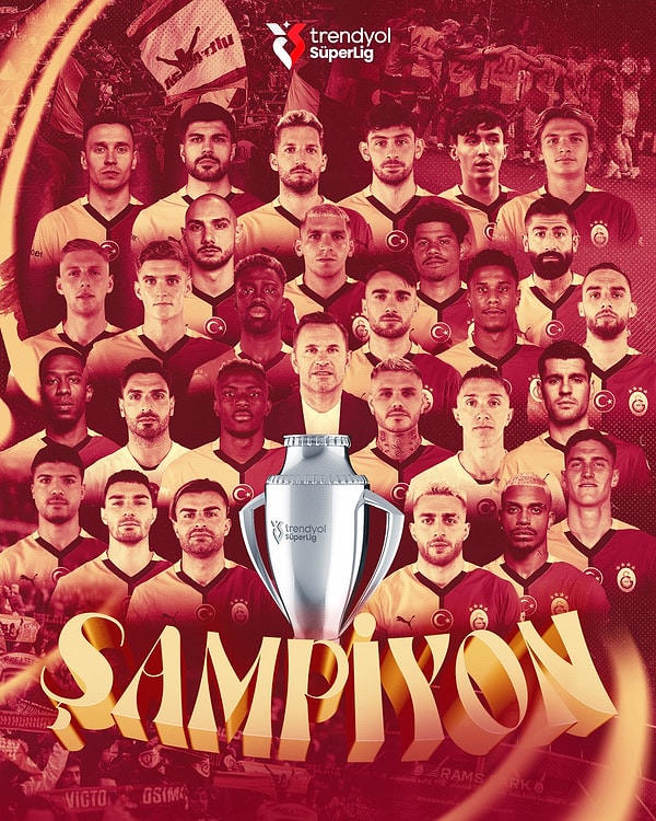 Galatasaray 25. sefer şampiyon oldu, 5. yıldızını taktı ve Şampiyonlar Ligi’ne direkt iştirak hakkı elde etti.