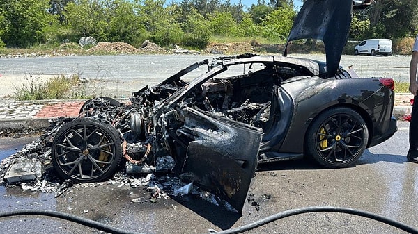 Seyir halindeki Ferrari marka 34 CAA 08 plakalı araba şimdi bilinmeyen bir nedenle yanmaya başladı.