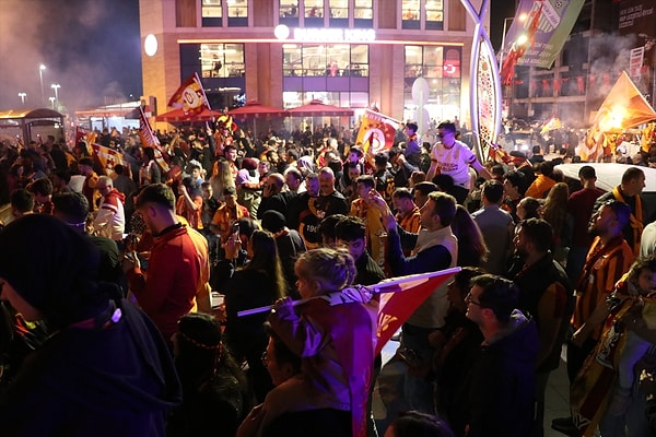 Galatasaraylılar, 25. lig şampiyonluğunu kent meydanlarında ve sokaklarda meşaleler ve bayraklarla kutluyor. Sokakları sarı‑kırmızı renklere boyayan coşkulu taraftarlar tezahüratlarla geceyi adeta gündüze çevirdi. Kutlamalarda beşinci yıldızın sevinci yaşanırken istenmeyen manzaralar de kameralara yansıdı.
