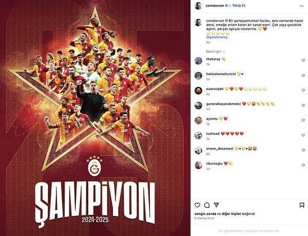 Galatasaraylıların kutlamaları ülkenin dört bir yanında devam ederken, Galatasaraylı ünlülerimiz de boş durmadı! Gelin, kimler Galatasaraylıymış bir hatırlayalım ve paylaşımlarını birlikte inceleyelim!