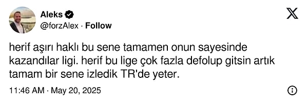 Bir Fenerbahçe taraftarı: “Türkiye ligi senin için kâfi değil. Mesleğini seçmeli ve daha büyük bir lige gitmelisin.”