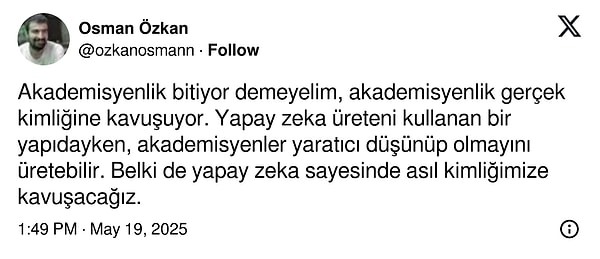 Artık akademisyenlik bitiyor