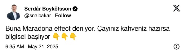 “Maradona ölmüş, yıllar olmuş, bu gün öğrendim. Çok şaşırdım.”