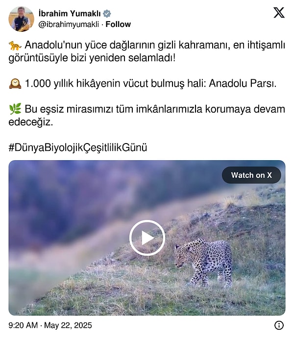 Nesli tükendiği düşünülen Anadolu parsının Türkiye topraklarında yine görüldüğü ortaya çıkmıştı. Tarım ve Orman Bakanı İbrahim Yumaklı, fotokapan ile görüntülenen Anadolu parsının son halini paylaştı.