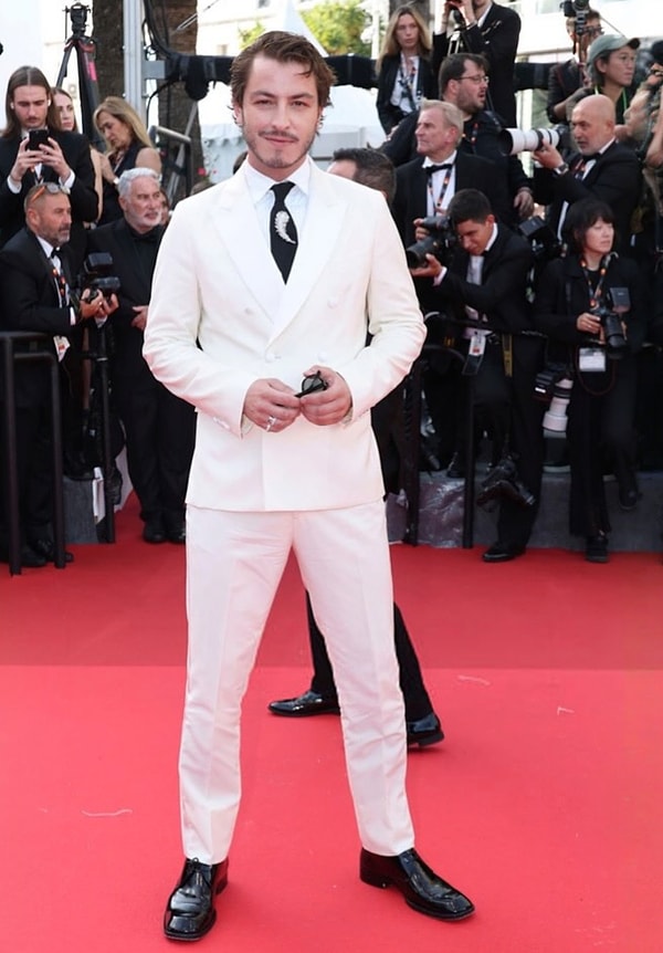 Boran Kuzum bu sefer Cannes kırmızı halısına yetişti! Beyaz kadro elbisesi ve kravatındaki broş ile dikkat çeken oyuncu tenkitlerin maksadı olmaktan kaçamadı.