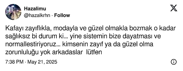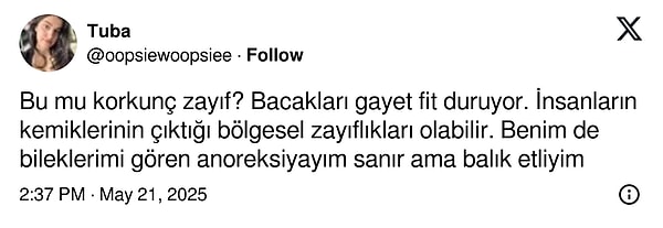 Bazı kullanıcılar “Bu kadar zayıflıkla ileride önemli sıhhat meseleleriyle karşılaşabilir” diyerek tasalarını lisana getirirken, Ünsal’ın sıhhat meselelerini hatırlatan sevenleri tartışmaları alevlendirdi.