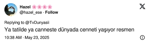 Son vakitlerin en dikkat çeken isimlerinden Hande Erçel, geçtiğimiz bayramda sevgilisi Hakan Sabancı ile Maldivler tatiline çıkmıştı. Hiç paylaşım yapmayan çift hepimizi şaşırtmıştı. Akabinde Cannes Sinema Şenliği’ne katılan Erçel yurda döner periyot telefonu eline aldı ve seri halde Maldivler paylaşımı yapmaya başladı. Siyah kombiniyle beğeni toplayan hoş oyuncunun tatil paylaşımları goygoycuların radarına takıldı.