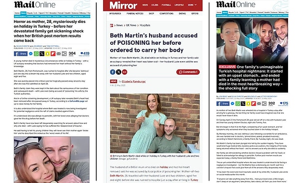 İngiliz medyasında yer alan haberlere ve İYİ Parti milletvekili Turhan Çömez’in Meclis gündemine taşıdığı olaya nazaran; İngiliz turist Beth Martin, tatil için geldiği Türkiye’de rahatsızlanarak Pendik Eğitim ve Araştırma Hastanesi’ne kaldırılıyor. Yaşadığı rahatsızlık nedeniyle Martin’e otopsi yapılıyor ve isimli süreçlerin akabinde ülkesine gönderiliyor.