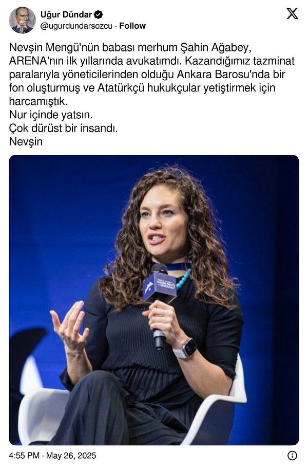 Uğur Dündar ise Mengü’nün hayatını kaybeden babası Şahin Mengü’yü örnek göstererek ünlü gazeteciye sahip çıktı.