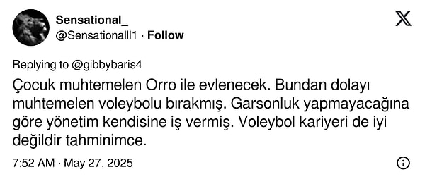 Fenerbahçe Bayan Voleybol Ekibi’nin yeni transferi Alessia Orro’nun erkek arkadaşı Matteo Picchio, sevgilisinin mesleği için voleybol hayatını noktaladığını duyurdu. 26 yaşındaki oyuncu, Orro’nun Türkiye’de yaşayacak olmasında ötürü bu türlü bir karar aldığını belirtirken sarı-lacivertli kulüpte antrenörlük için staj yapacağını söz etti.
