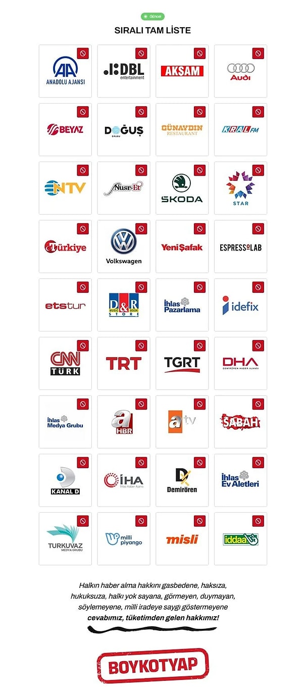 İBB Başkanı Ekrem İmamoğlu hakkında verilen kararlar ile İBB’ye başlatılan operasyonlar nedeniyle 23 Mart’tan itibaren ülke genelinde vatandaşlar meydanlara akın etmişti. Kararı protesto eden vatandaşlar birebir vakitte polisin sert müdahalesiyle karşılaşmış, gözaltılar ve tutuklamalara maruz kalmıştı. CHP Genel Başkanı Özgür Özel, İmamoğlu hakkında verilen kararları ve hareketleri göstermeyen medya kuruluşları ile bağlı oldukları marka kümelerini boykot etmeye çağırmıştı. 25 Mart’ta Saraçhane hareketlerinde boykot listesi paylaşan CHP lideri Özgür Özel’in açıklamaları oldukça gündem olmuştu.