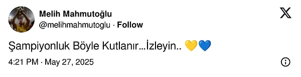 Melih Mahmutoğlu, X hesabından da ‘Şampiyonluk Bu türlü Kutlanır…İzleyin..’ paylaşımında bulundu.