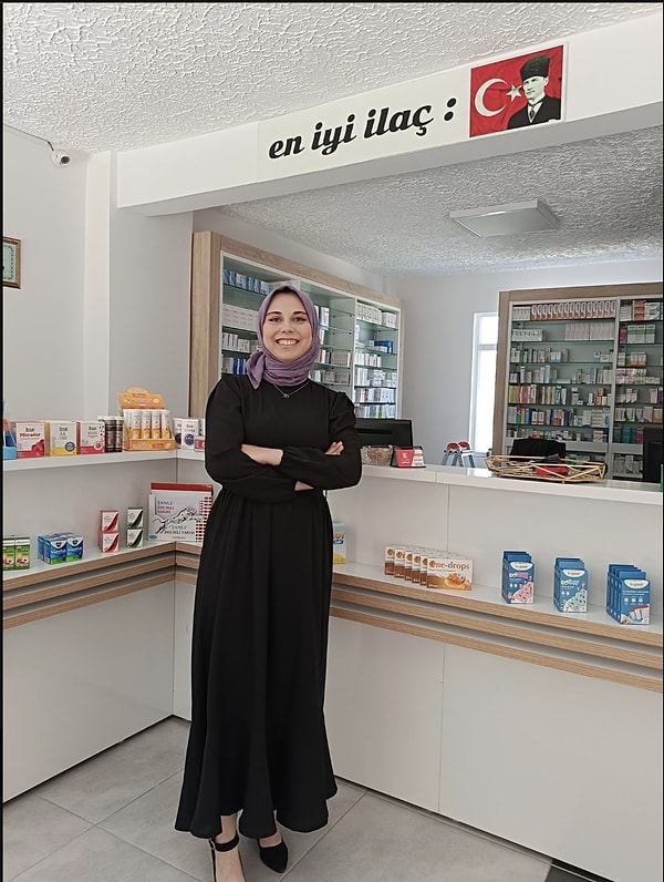 Bu genç bayan Eczacı Buse. Kendisi kardeşinin ismiyle birinci eczanesini açmış ve memnunluğunu X platformundan paylaşmış.
