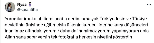 Çoğumuz sevincimizi, hüznümüzü toplumsal medyadan paylaşmayı alışkanlık haline getirdik artık. Ancak herkes paylaştığımız bu samimi hisleri anlamıyor maalesef. Tıpkı birinci eczanesini açan Buse’ye yapılan anlamsız Atatürk yorumu üzere. Ayrıntılar içeriğimizde 👇