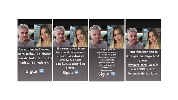 Galatasaray’ın Arjantinli golcüsü Mauro Icardi ile eski eşi Wanda Nara ortasındaki boşanma davasının ikinci duruşmasının epeyce gergin geçtiği ortaya çıktı. Facundo Luis Ventura, Nara’nın Keita Balde olan imgeleri mahkeme salonunda yayınlandığını anda tansiyonun yükseldiğini aktardı.