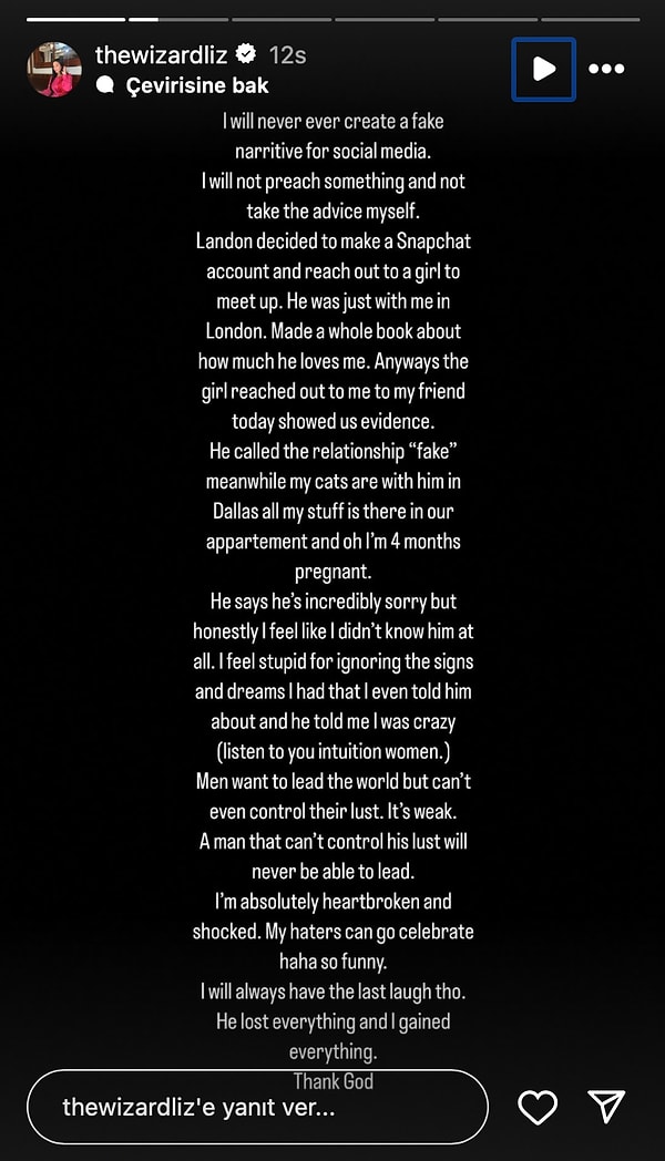 Kendini geliştirme görüntüleriyle ve ilgi tavsiyeleriyle tanınan Wizard Liz, uzun müddettir birlikte olduğu nişanlısından beklenmedik bir ihanetle sarsıldı. Bağı boyunca sadakate ve sevgiye inandığını söyleyen Liz, ihaneti öğrendikten sonra toplumsal medya hesabından çarpıcı açıklamalarda bulundu. 4 aylık gebe olan isim yaşananları anlattı.