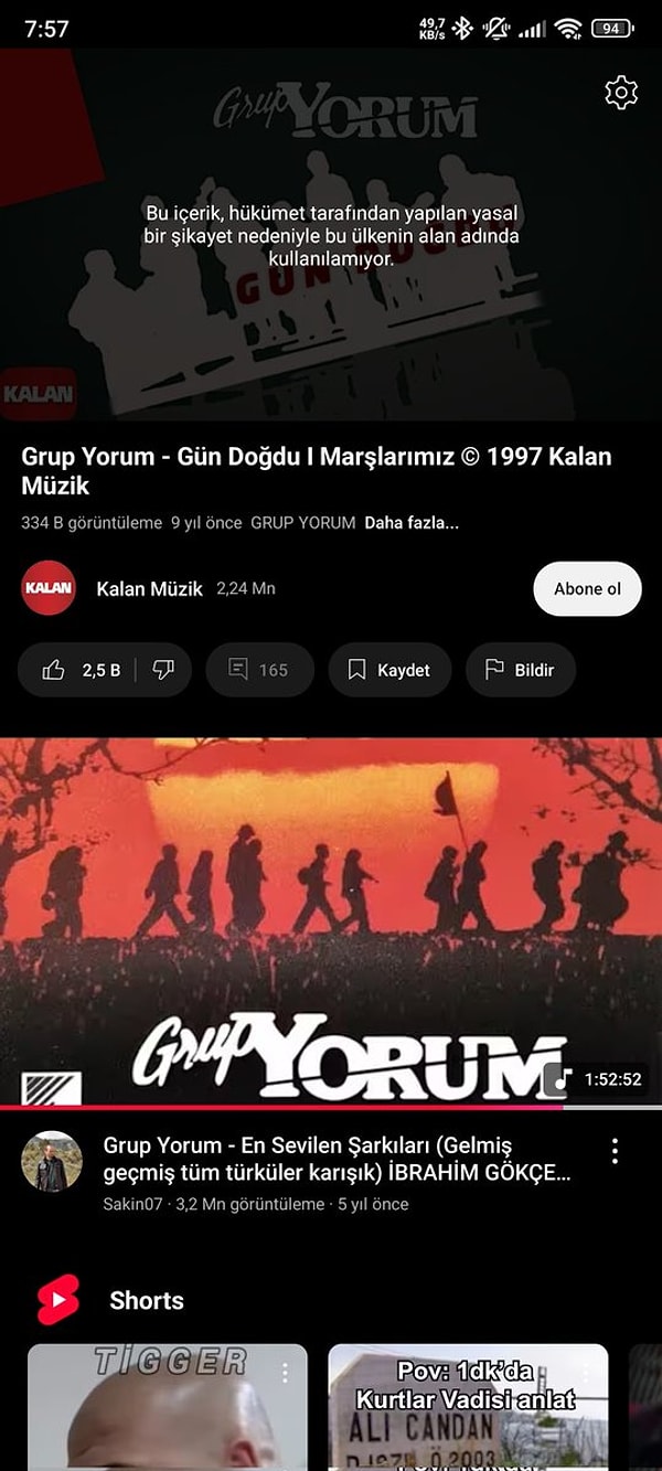 YouTube’da Küme Yorum dinlemek isteyen şahıslar, “Bu içerik, hükümet tarafından yapılan yasal bir şikayet nedeniyle bu ülkenin alan isminde kullanılmıyor” uyarısı ile karşılaştı.