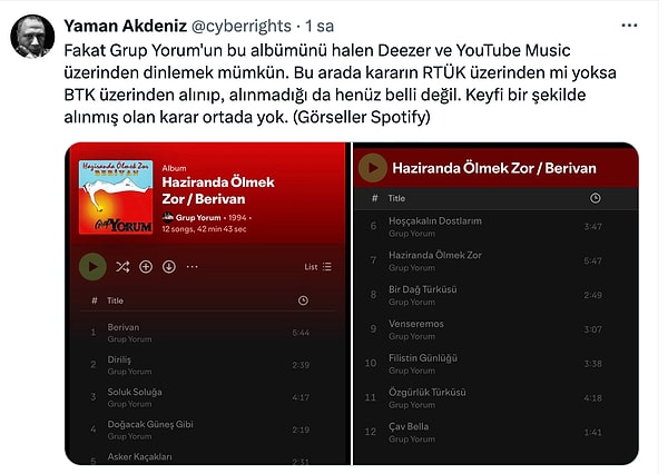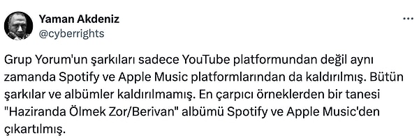 Spotify’da yer alan birçok Küme Yorum kesimi da platformdan kaldırıldı yahut erişilemez hale geldi.