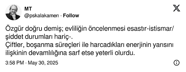 Özgür Turhan ise, boşanma haberine esprili bir biçimde ‘Zamanlama manidar!’ yorumunu yaparak, ayrılık sürecinde de mizahi bir yaklaşım sergilemişti.