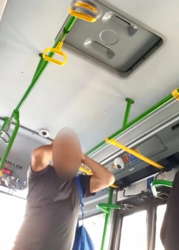 Polisin geldiğini duyan kuşkulu çılgına döndü. Kuşkulu evvel öfkesini kapıları kitleyen otobüs sürücüsüne gösterdi. Daha sonra da kendisini tokatlayıp küfürler savuran kuşkulu, yolculara da saldırmaya çalıştı. O anlar cep telefonu kamerasıyla kaydedildi.