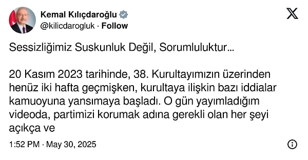 Kemal Kılıçdaroğlu sessizliğini bozdu.