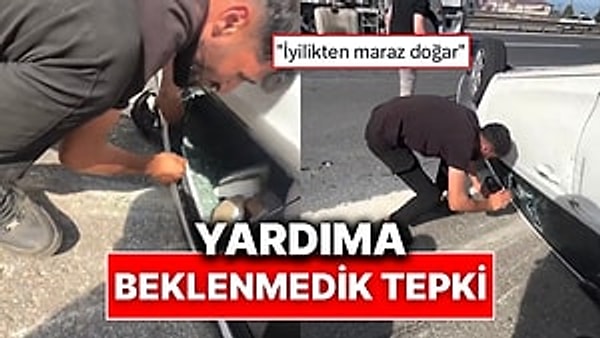 Bir araç süratle ilerlerken önündeki araca çarparak takla atmıştı. Aracı gören herkes yardım için sağ çekip yanlarına gerçek koştu. Kapıları açmak istediler fakat açılmadı. Hal bu türlü olunca bir vatandaş camı kırdı. Lakin aracın içindeki şahıslar buna sonlanarak, “Gerizekalı bunlar, niçin kırıyorsun” halinde yansılar verdi.