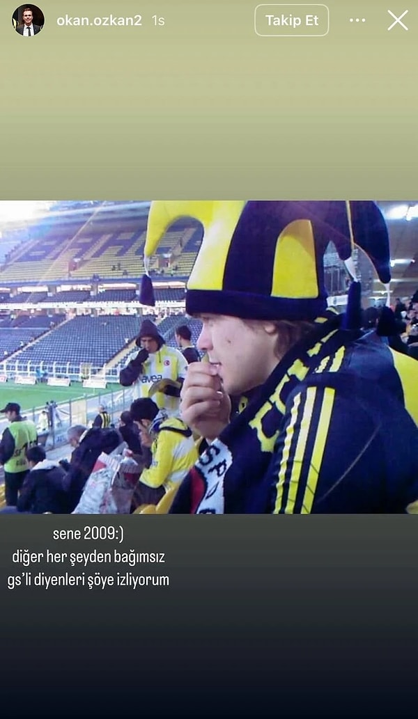 Okan Özkan, Fenerbahçe maçı izlerken bir fotoğrafını paylaştı ve fotoğrafa şu notu düştü: