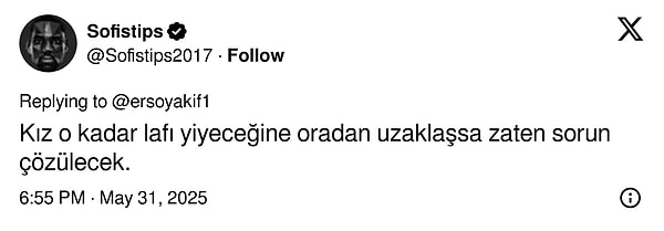 Kız o kadar lafı yiyeceğine oradan uzaklaşsa aslında sorun çözülecek.