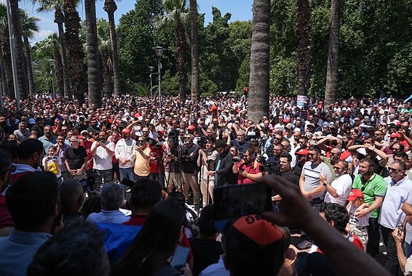İzmir Büyükşehir Belediyesi’ne bağlı  iştiraklerde çalışan emekçiler, 28 Mayıs gecesi greve gitme kararı aldı. Toplu iş görüşmelerinde sonuç çıkmaması üzerine grev kararı alan çalışanlar, İzmir Büyükşehir Belediyesi Hizmet Binası önünde toplanarak ‘İş, ekmek, adalet’, ‘Sadaka değil toplu sözleşme’, ‘Açlıktan ölmeyiz, biz bu yoldan dönmeyiz’ sloganları attı.