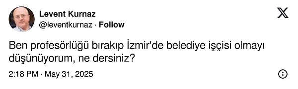 ‘Ben profesörlüğü bırakıp İzmir’de belediye emekçisi olmayı düşünüyorum, ne dersiniz?’