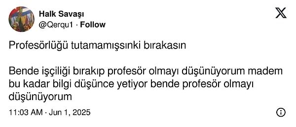 Bence bırakmayın hocam, bu başla ne hoş profesör olmuşsunuz işte.Zira, işçi olsanız park sulamak için elinize hortum bile vermezler.