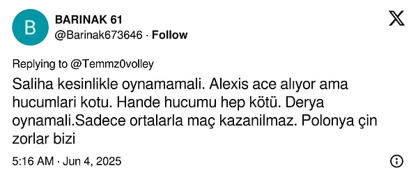 Milletler Ligi’ndeki birinci maçında Fransa karşısına çıkan Filenin Sultanları, rakibini hayli kolay bir biçimde mağlup etmeyi başardı. Koç Daniele Santarelli’nin genç ve yeni isimlere talih verdiği çabada oynanan kadro oyunu genel manada voleybolseverlerin beğenisini kazandı.