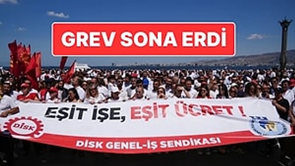 İzmir Büyükşehir Belediyesi’nde DİSK’e bağlı personellerin başlattığı grev sona erdi. Sendika, lider Cemil Tugay’ın yüzde 30 artırım ve yüzde 19’luk enflasyon farkı teklifini kabul etti.
