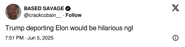 “Trump’ın Elon’u hudut dışı etmesi çok komik olurdu”