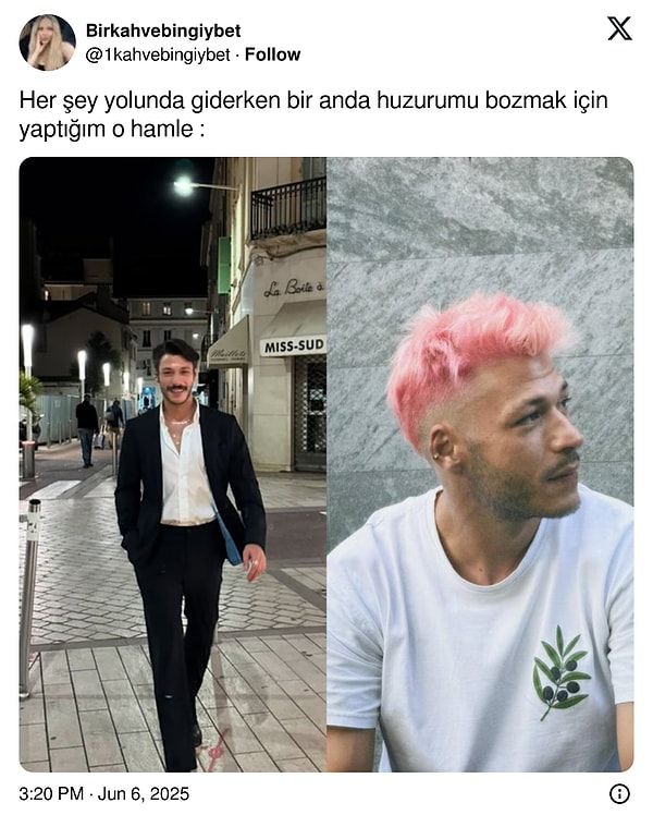 Oyuncu Kubilay Aka, bu kere rolüyle değil, yeni imajıyla gündemde! Saçlarını pembeye boyatarak toplumsal medyada adeta olay yaratan Aka, cesaretli değişimiyle gündeme damga vurdu. Sosyal medyada birtakım kullanıcılar onu ulusal voleybolcu Ebrar Karakurt’a benzetirken, Kubilay Aka’nın marjinal imaj değişikliği lisanlara düştü.